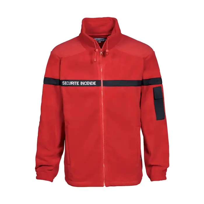 Le blouson polaire Sécurité Incendie CityGuard brodé "sécurité incendie" sur une bande bleue est un blouson de couleur rouge.