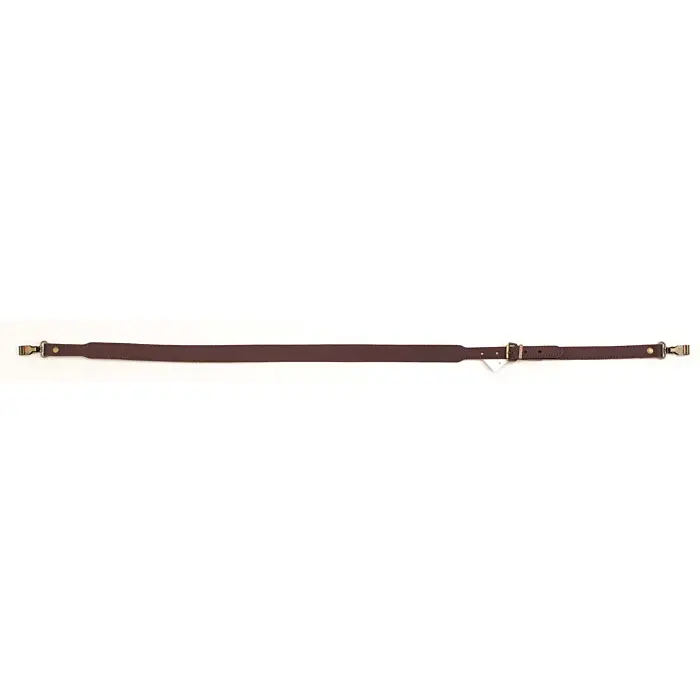 Cette bretelle en croûte de cuir tressée 7 brins pour fusil de chasse se ferme par bouton.