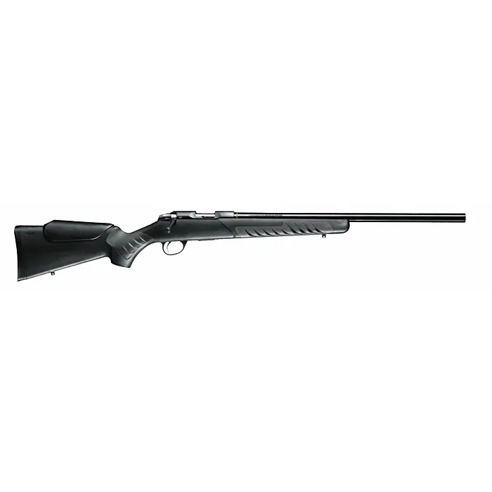 La carabine à verrou Sako Quad Heavy Barrel calibre 17 HMR est équipée d'une crosse composite, d'un canon lourd interchangeable de 56 cm non fileté et d'une détente réglable entre 1 et 2 kg.