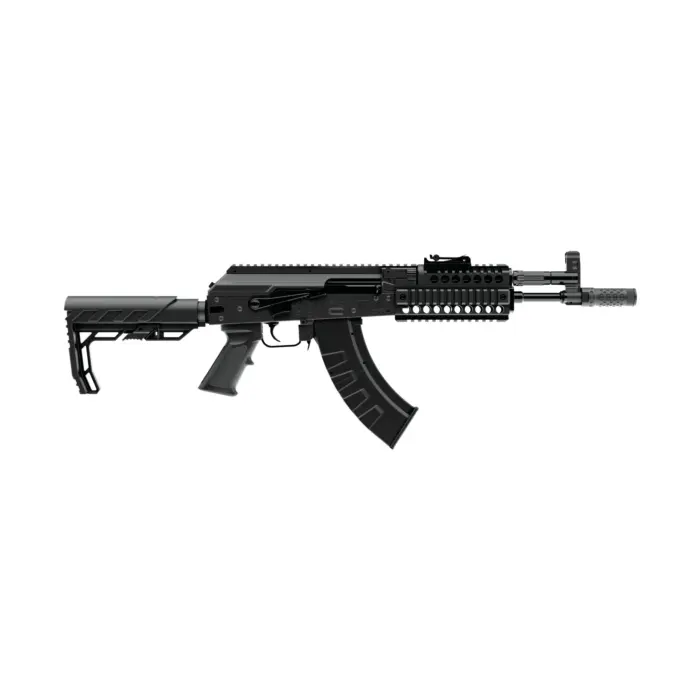 Elle est équipée de 4 rails Picatinny de 21 mm, d'une crosse pliable et réglable sur 5 positions, d'un chargeur 28 coups, d'une visée ouverte (guidon pliable et réglable), d'un canon en acier, d'un speedloader et enfin d'une culasse métal blowback.