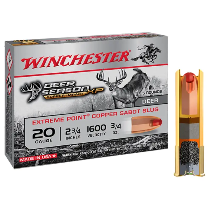 La cartouche Winchester Deer Season Lead Free calibre 20/70 est une balle sans plomb expansive.