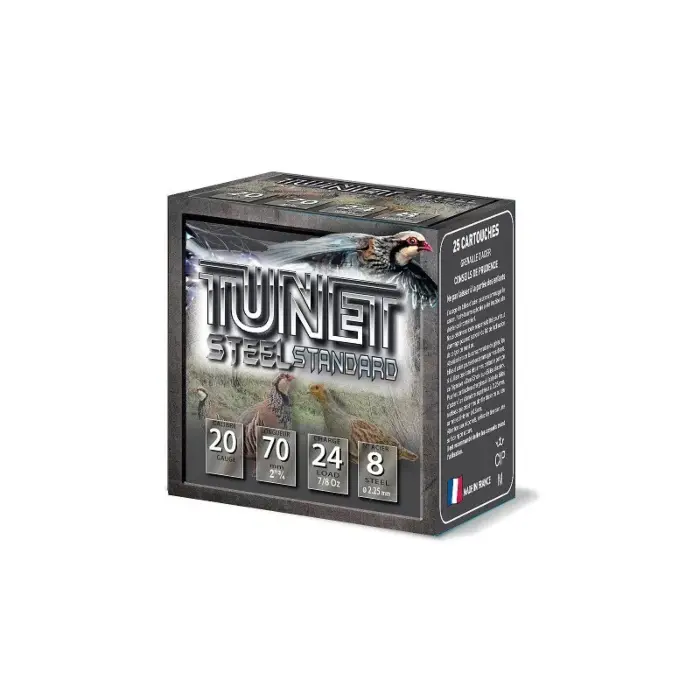 La cartouche Tunet Migration Steel Standard en calibre 20/70 est une munition de chasse moderne, spécialement conçue pour les chasseurs soucieux de l'environnement et respectant les réglementations sur l'utilisation des billes d'acier.