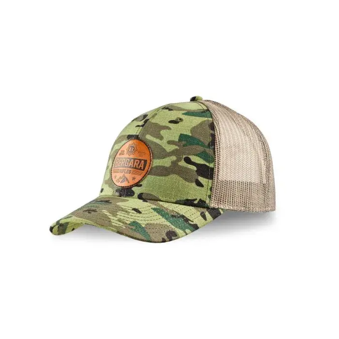 Disponible en 3 versions : Le modèle vert Bergara Mountain Patch comporte un écusson en cuir gravé, le modèle gris comporte un écusson blanc et le modèle camouflage comporte un écusson gravé.