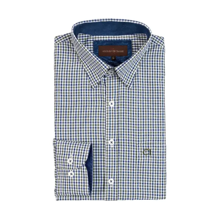 La chemise de chasse Club Interchasse Marlin possède aussi un col boutonné invisible, une poche plaquée et une broderie CI.