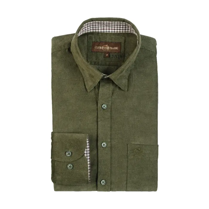 La chemise de chasse Club Interchasse Olive possède des coudières, un intérieur du col et des poignets en opposition de couleur.