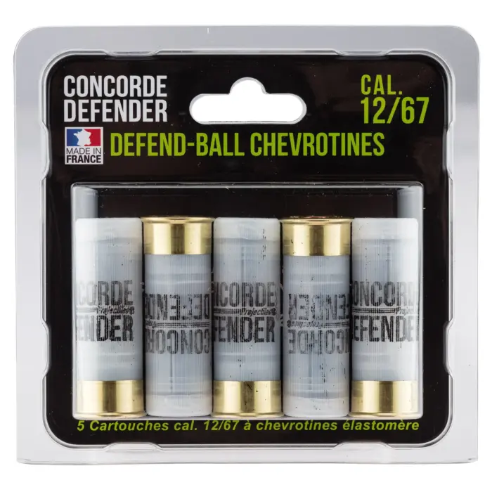 La chevrotine Defend Ball Concorde Defender calibre 12/67 est une cartouche de défense à chevrotine caoutchouc efficace jusqu’à 15 mètres qui permet un tir incapacitant avec votre arme traditionnelle.
