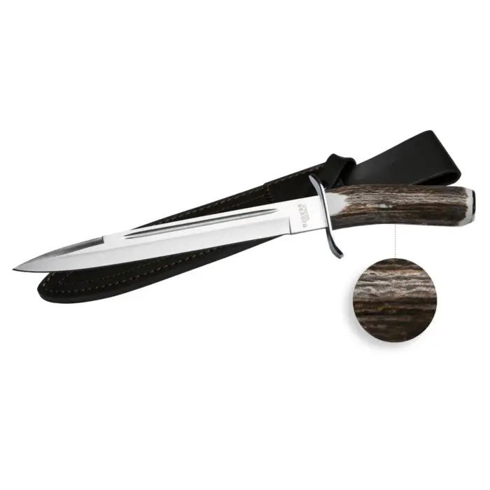 Dague De Chasse 25,5 cm Manche Bois de cerf Avec Etuis