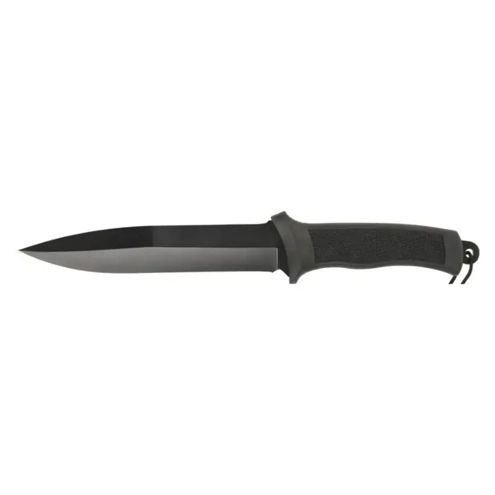 Cette dague de chasse est un outil fiable et sécuritaire, doté d'une lame de 18cm en acier inoxydable 420. Son principal avantage est son manche conçu avec un revêtement anti-dérapant, garantissant une prise en main ferme et sécurisée même dans des conditions humides ou sanglantes. Elle est livrée prête à l'emploi.