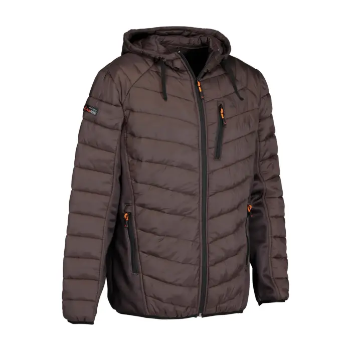 Elle est équipée d'une doublure 100% polyamide, de deux poches basses, d'une poche poitrine et d'un cordon de serrage.