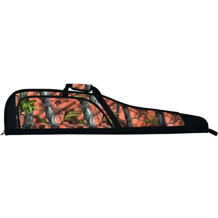 Le modèle "Tunet Camo Orange 120 cm" se distingue par son motif de camouflage haute visibilité et sa robustesse, assurant une protection efficace de la carabine (notamment avec sa lunette montée) contre les chocs, les rayures et les intempéries, tout en garantissant la sécurité du chasseur grâce à une visibilité accrue.