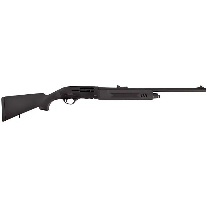 Ce fusil de chasse semi-automatique à emprunt de gaz est livré avec une crosse et un devant synthétique avec quadrillage.