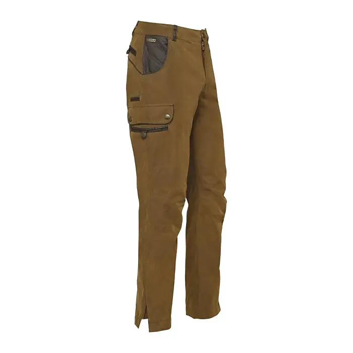 Ce pantalon de couleur tabac est équipé d'une poche couteau, de poches latérales, de genoux préformés et de poches arrières passepoilées.