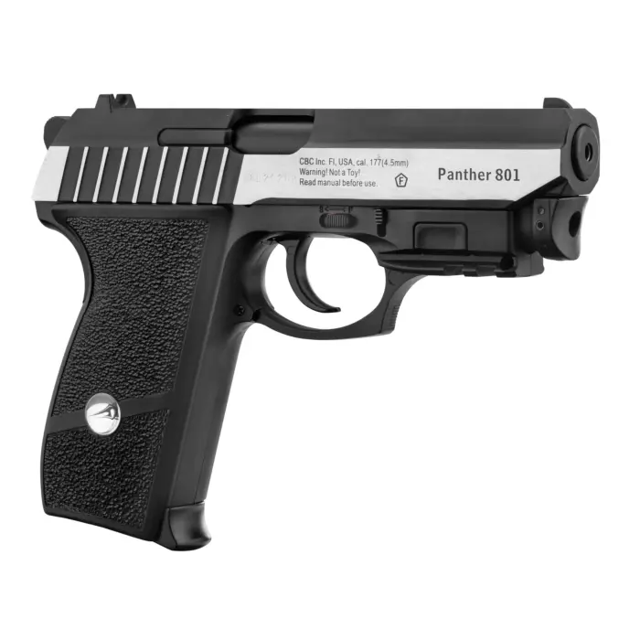 Le pistolet CO2 Borner Panther 801 calibre 4.5 mm BB'S tire 19 coups en mode semi-automatique.