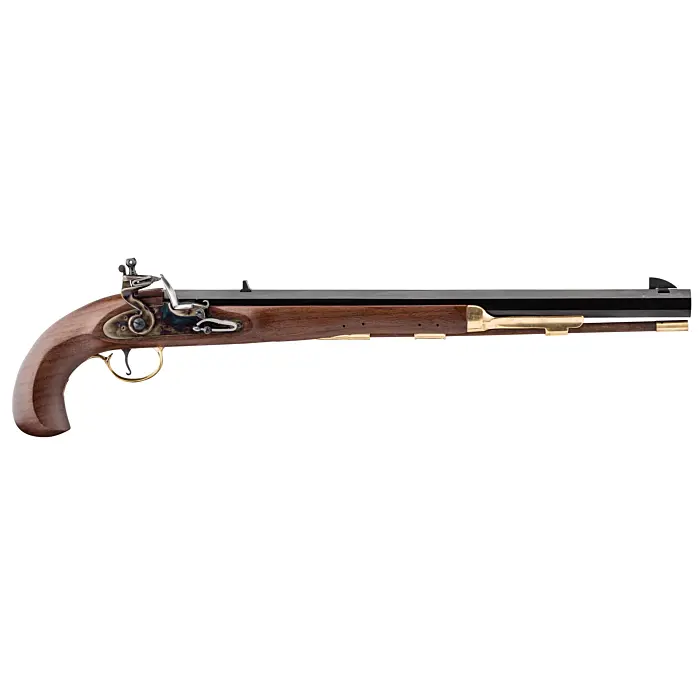 Le pistolet Davide Pedersoli Bounty calibre 45 à silex à poudre noire est le pistolet préféré des Bounty Hunters car son canon long lui donne plus de précision pour le tir à longue distance.