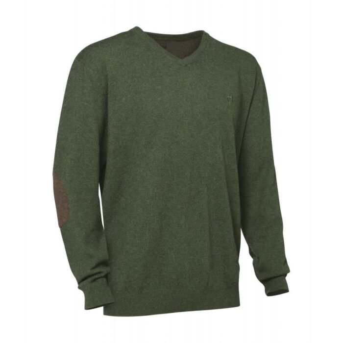 Ce pull Club interchasse Weslon kaki fin avec son col en V peu profond est composé à 50 % de laine et à 50 % de coton.