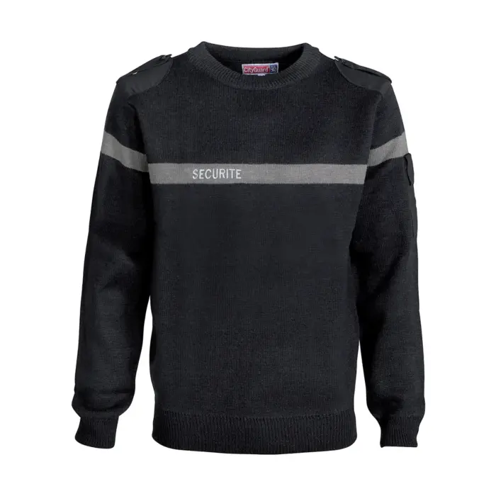 Ce pull sécurité CityGuard noir est doté d'une bande grise brodée "sécurité" .