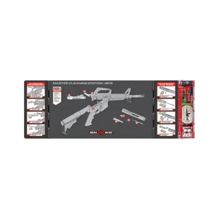 Cette station de nettoyage avec tapis Real Avid Master pour AR15 est conçue pour le nettoyage complet de votre AR15 mais aussi des carabines de calibre 22 lr, 9 mm, 357, 38, 40 et 45 et des fusils de calibre 12 à 20.