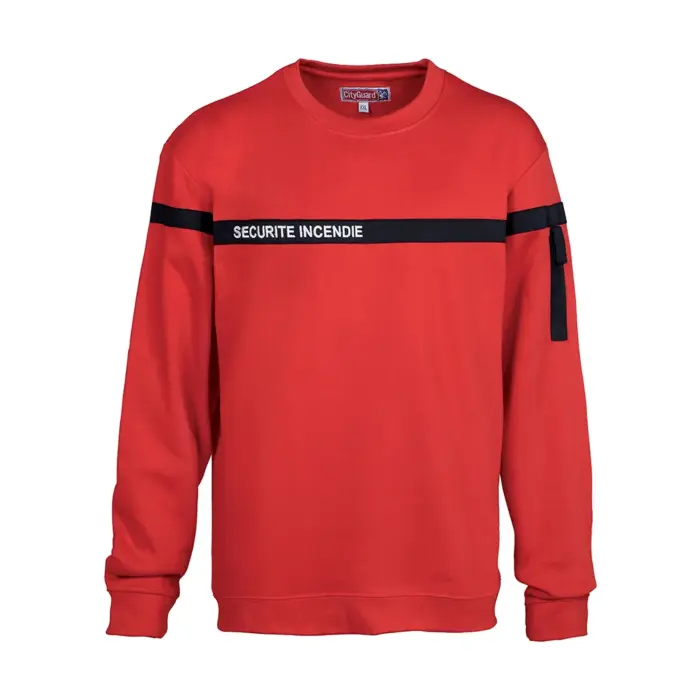Ce sweat-shirt Sécurité Incendie CityGuard brodé "sécurité incendie" sur bande bleu marine est de couleur rouge.