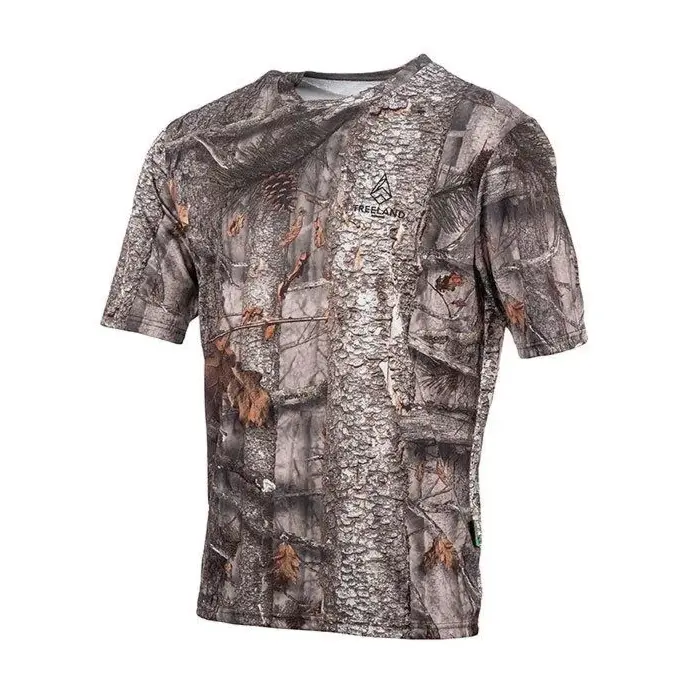Ce T-shirt de chasse à manches courtes pour homme camo forest est composé à 100 % de polyester.
