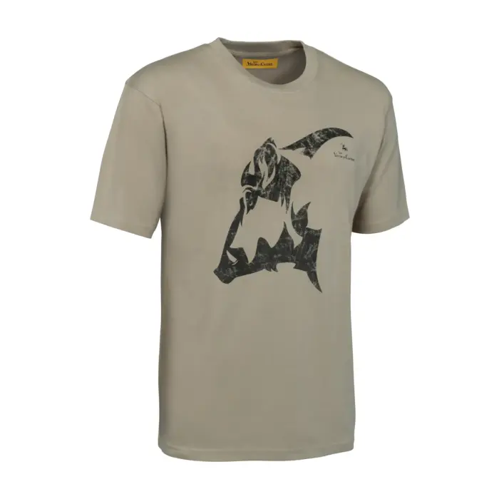 Ce t-shirt Ligne Verney-Carron sanglier est un t-shirt beige à manches courtes.