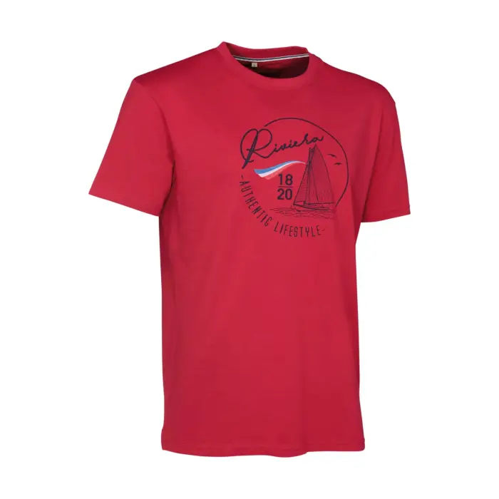 Ce t-shirt Riviéra Ligne Verney-Carron est un t-shirt rouge à manches courtes.